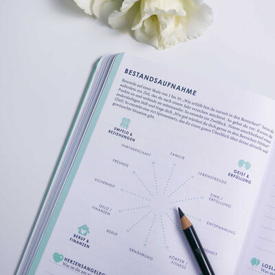 Iris Reiche stellt sehr gute Fragen, die einen wirklich zum Nachdenken anregen. Gibt einem Platz, um Ideen und Träume und Gedanken aufzuscribbeln, sie fragt sogar danach, wie man sich sein Leben vom Sterbebett rückwärts gedacht wünschen würde.